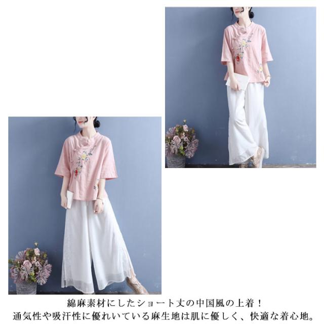 チャイナボタン チャイナカラー 綿麻Tシャツ 綿麻Tシャツ 綿 リネンブラウス レディース 麻 斜めボタン Tシャツ 刺繍 半袖ブラウス 通勤 七分袖 リネン混 ブラウス 無地 チャイナ風 中華 中国風 麻生地 トップス 春夏 着痩せ カジュアル リネン オシャレ 夏 送料無料