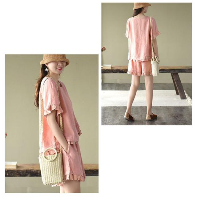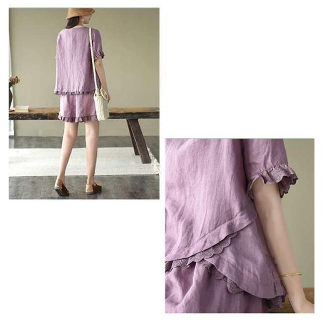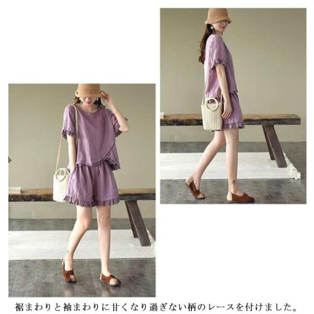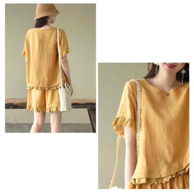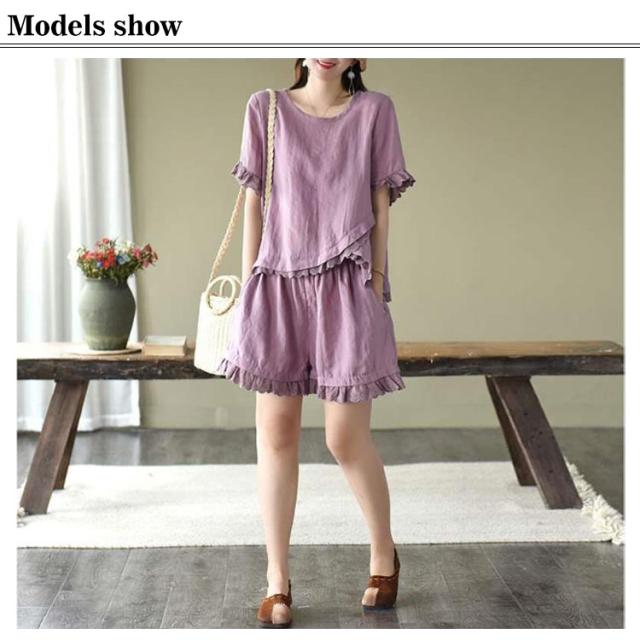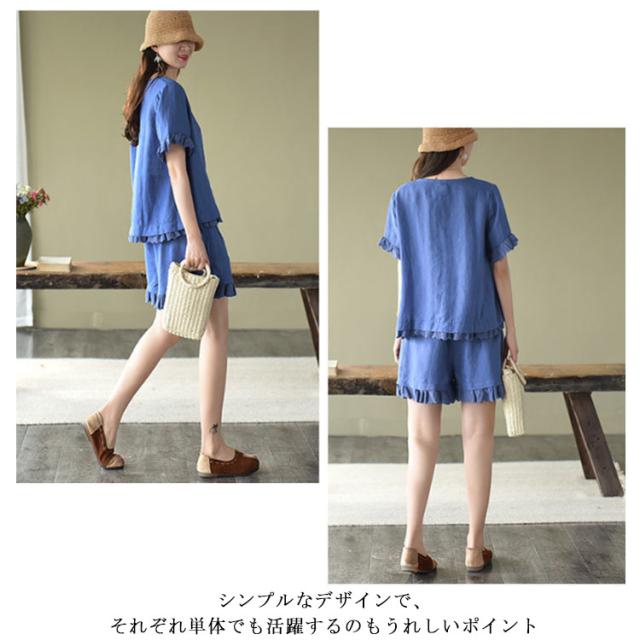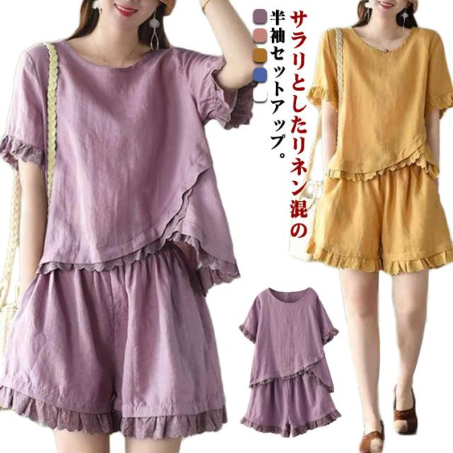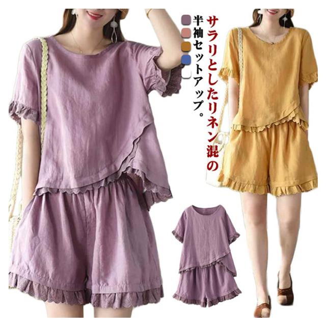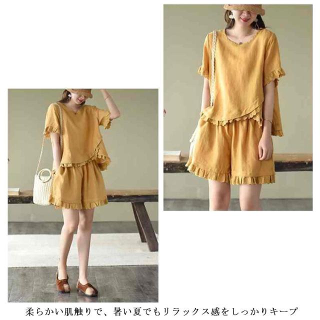 涼しい トップス 2点セット 薄い リネン 綿麻 ブラウス 短パン 上下セット セットアップ Tシャツ 夏 セットアップ ハーフパンツ ショートパンツ 体型カバー 着痩せ 半袖 トップス リラックスパンツ リネンパンツ ウエストゴム ワイドパンツ カジュアル おしゃれ 大人