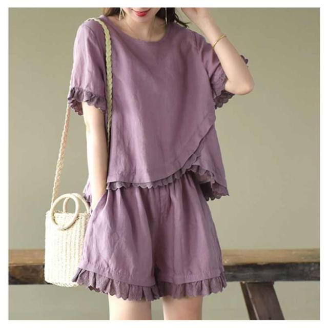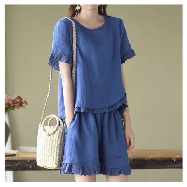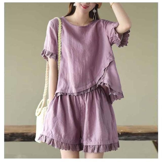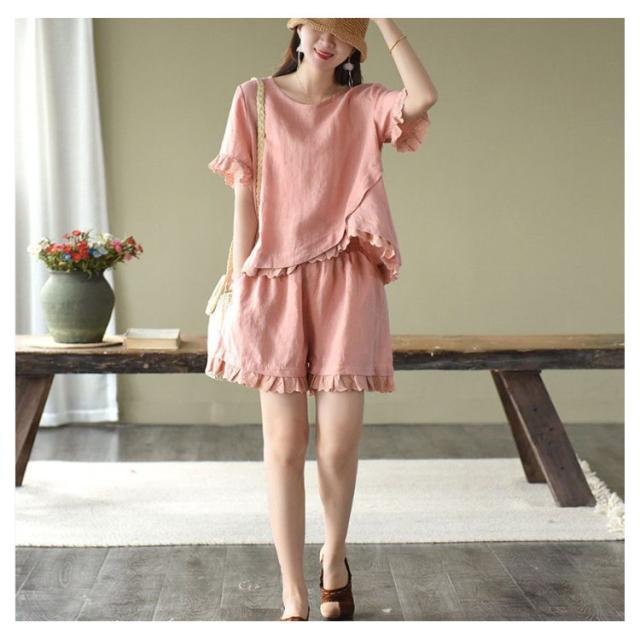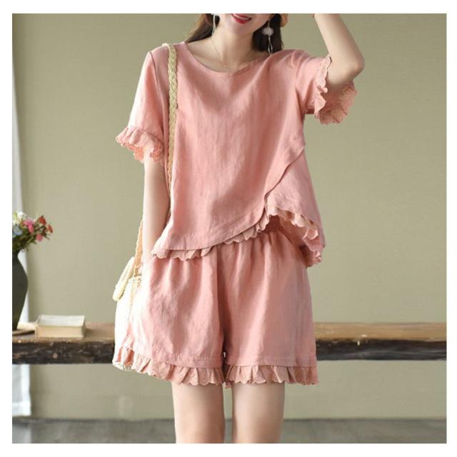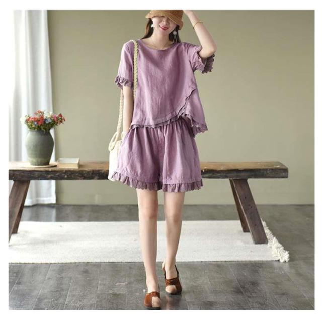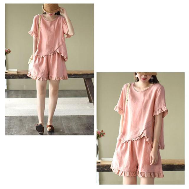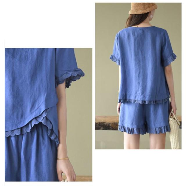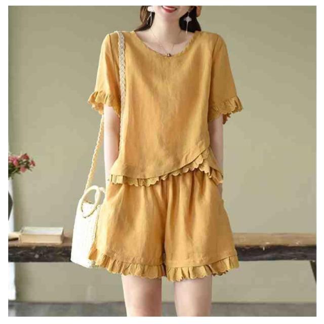 涼しい トップス 2点セット 薄い リネン 綿麻 ブラウス 短パン 上下セット セットアップ Tシャツ 夏 セットアップ ハーフパンツ ショートパンツ 体型カバー 着痩せ 半袖 トップス リラックスパンツ リネンパンツ ウエストゴム ワイドパンツ カジュアル おしゃれ 大人