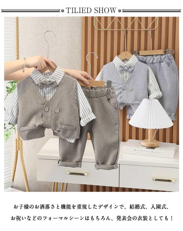 キッズスーツ スーツ 男の子 キッズスーツ 七五三 キッズ 子供服 長袖 ベスト シャツ パンツ 3点セット 洋服 上下セット フォーマル 赤ちゃん 結婚式 入学式 入園式 卒園式 発表会