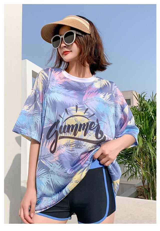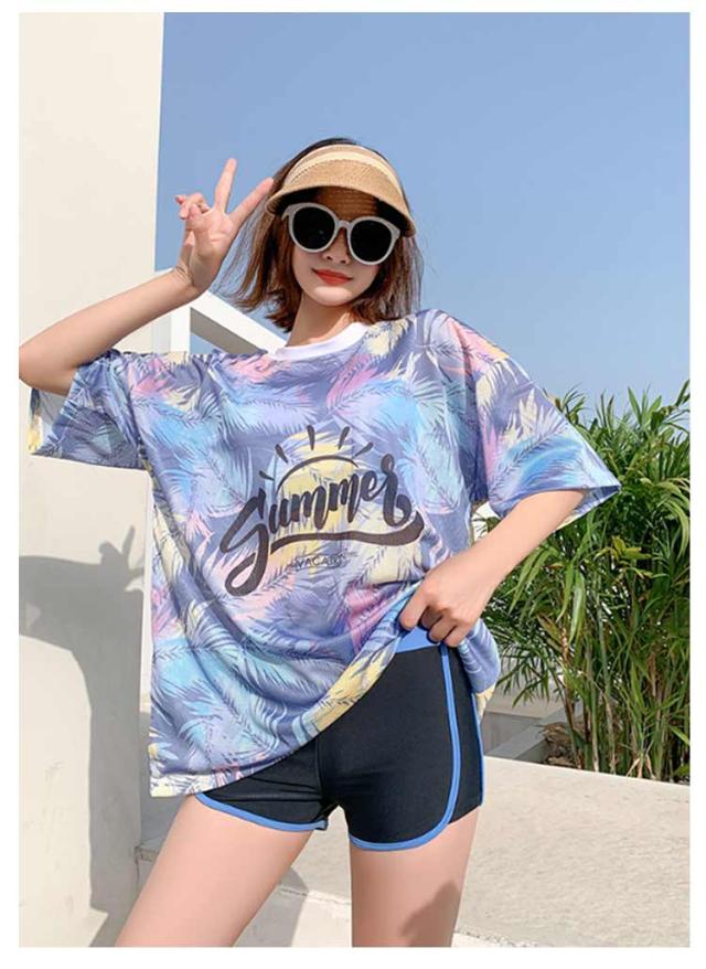| 露出が苦手なあなたでも大丈夫なトップス付水着3点セットです! 夏の定番、マリンスポーツにぴったりです。 ショートパンツ仕様になっており、気になる太ももや下腹部をしっかりカバーしてくれます。 ビッグシルエットのTシャツタイプで、着替えも楽々♪ こんな水着を着て、夏を満喫すれば一生残る思い出になること間違いなしっ! | |