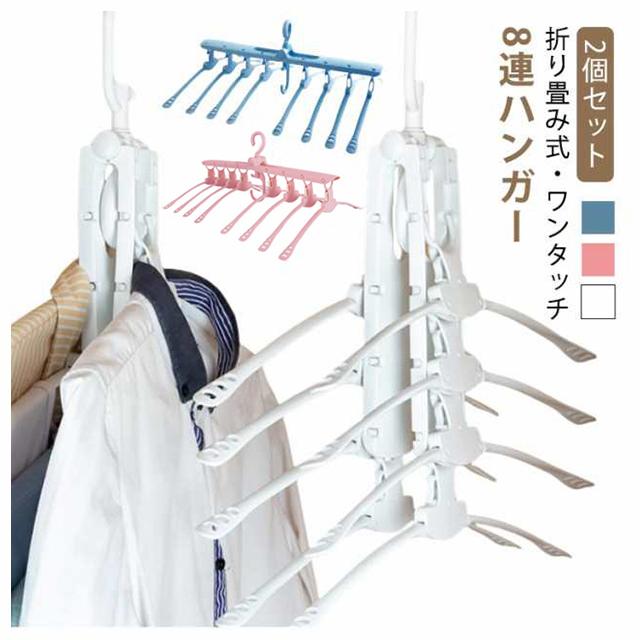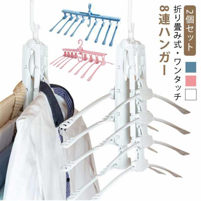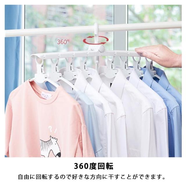 洗濯物干し 収納 ハンガー 8連ハンガー 360°回転可能 物干し 洗濯 洗濯ラック 折り畳み ワンタッチ 衣類 便利 【2個セット】 物干しラック 物干しハンガー ワンタッチハンガー 8連 tシャツハンガー 折り畳める コンパクト 滑り止め