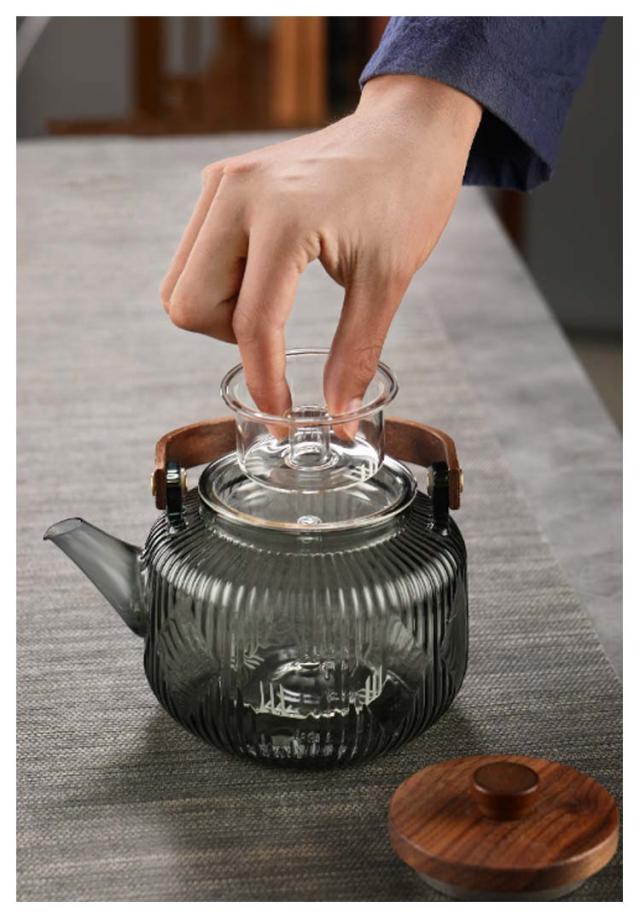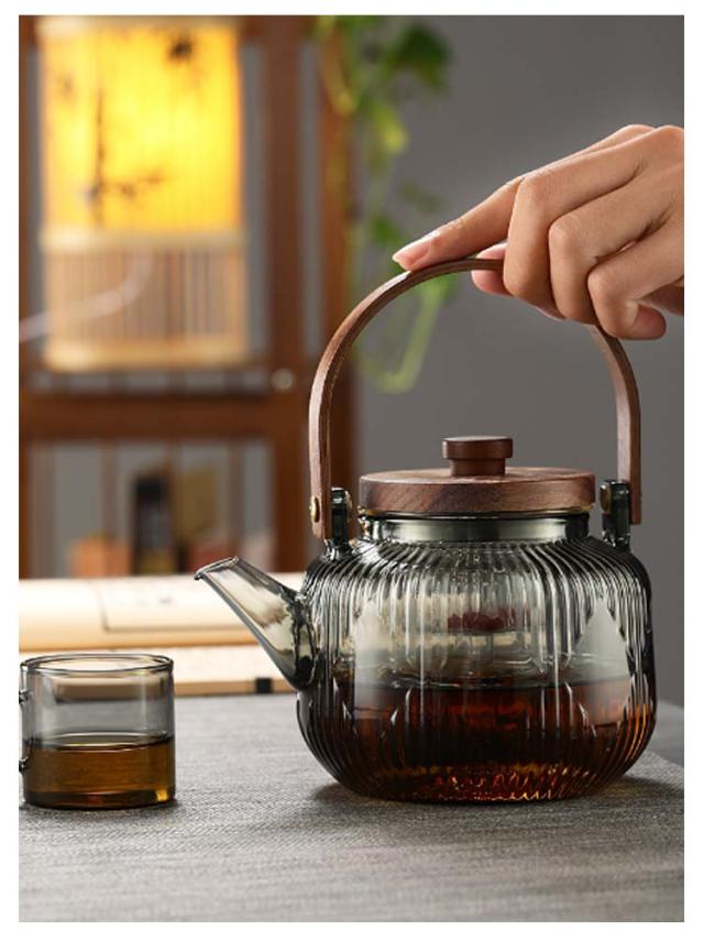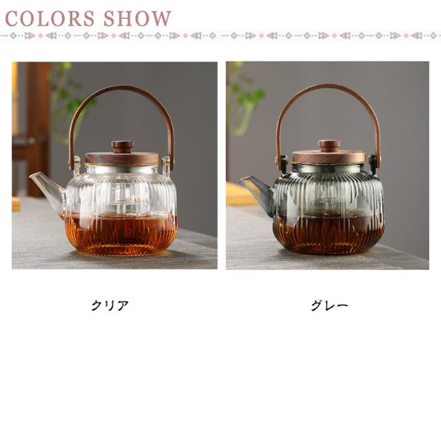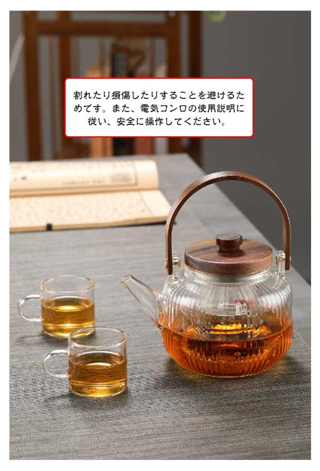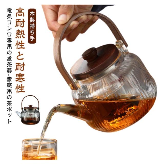 800ml 紅茶ポット 茶こし付き ガラス製ポット 木製持ち手 電気コンロ専用の煮茶器-家庭用の茶ポット ティーポット ガラス急須 耐熱ガラス フルーツティー/花茶/工芸茶/ハーフティー 蒸茶 煮茶 健康茶器