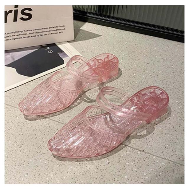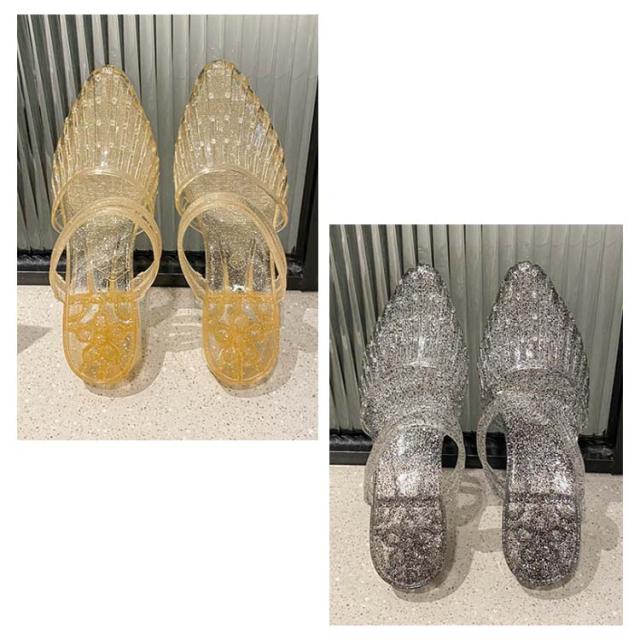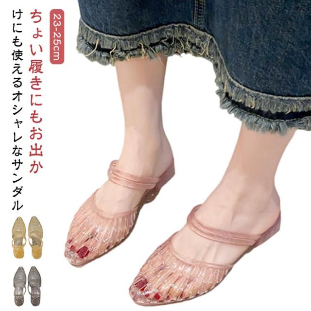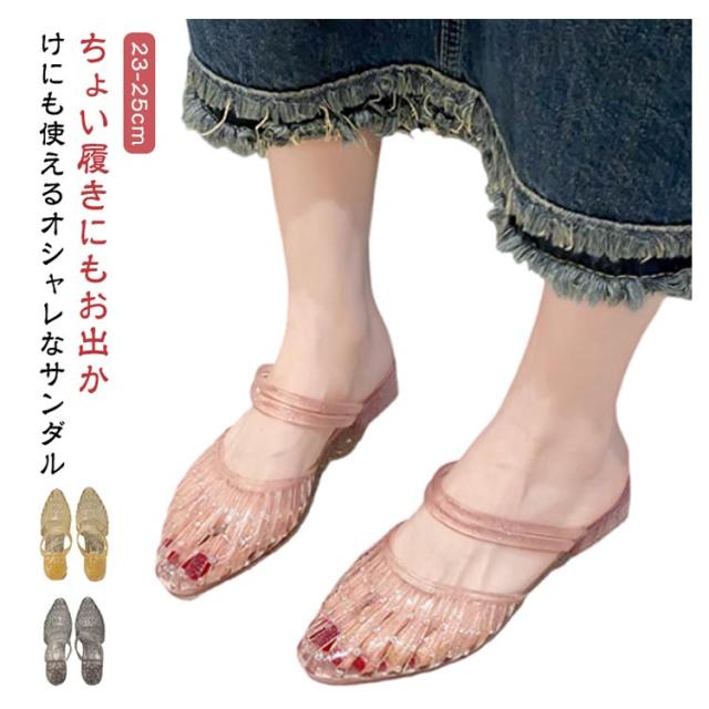 ローヒール パンプス レディース サンダル フラットシューズ パンプス 軽量 キラキラ ヒールサンダル 美脚 ラバーシューズ ぺたんこ レインシューズ 雨靴 夏 メッシュサンダル 疲れにくい おしゃれ かわいい アウトドア リゾート ビーチ