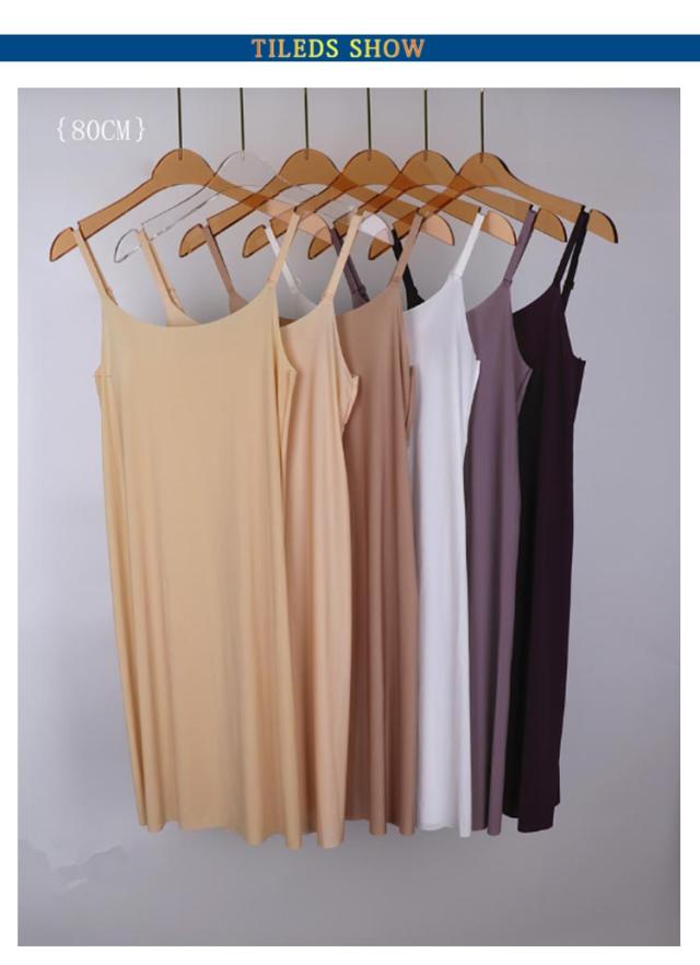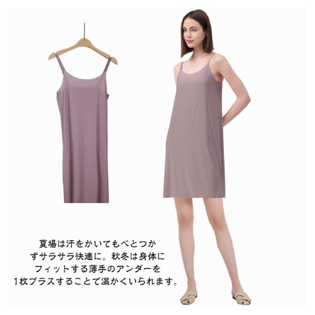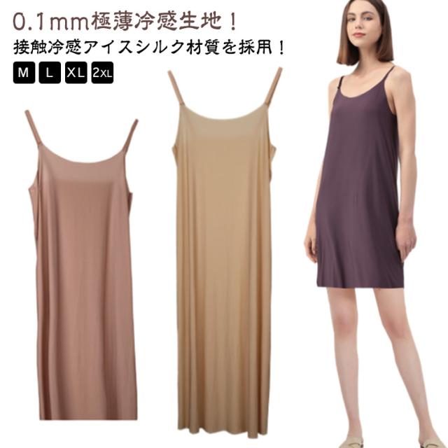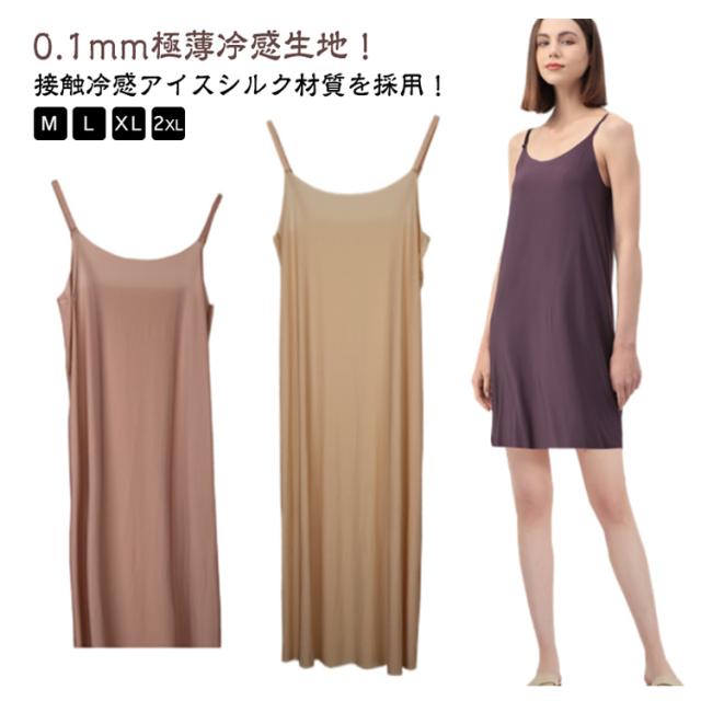 0.1mm極薄! ロング キャミソール スリップ ひんやり インナー 涼しい 透け防止 キャミワンピース アイスシルク シームレス ペチコート レディース 肌着 ペチワンピース 肩紐調節 透け防止 接触冷感 0.1mm極薄! 静電気防止