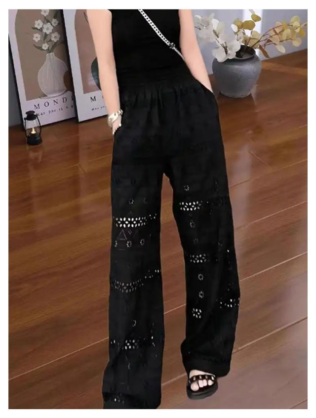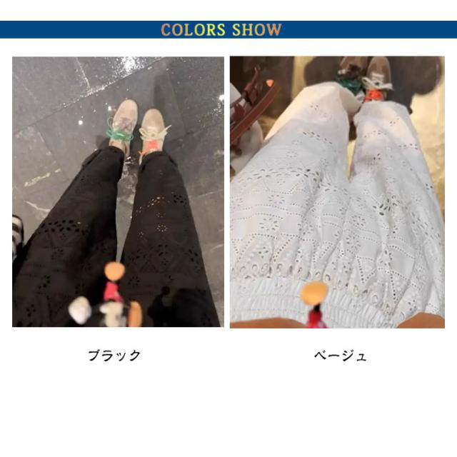 レース ワイドパンツ コットン パンツ 総レーススカラップ インナー 夏 綿 春 スカラップパンツ レースパンツ ワイドパンツ ロング丈 ボトムス ペチパンツ ワイド インナーパンツ ロングパンツ ルームパンツ ゆったり 薄手