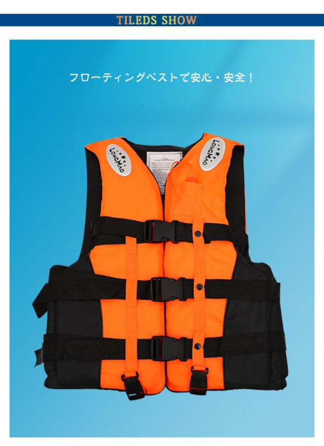 | マリンスポーツ、マリンレジャー水泳の補助、釣り、アウトドア、水辺での遊び、イベントに! フローティングベストで安心・安全! 安心笛付き、両肩に反射材で暗がりでも目立ちます! 緊急の水害避難時でもサッと着用できます! | |