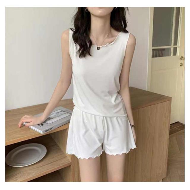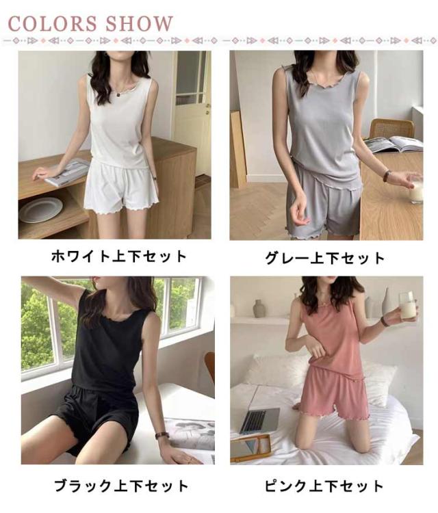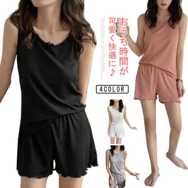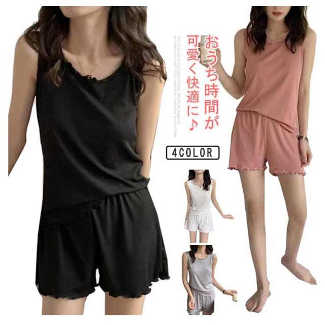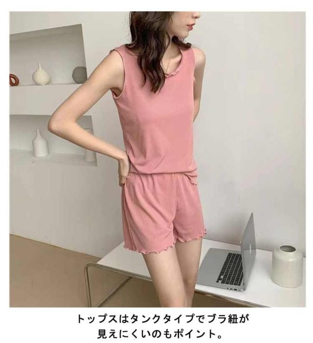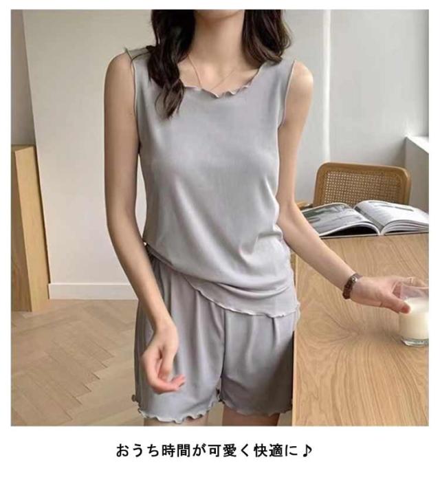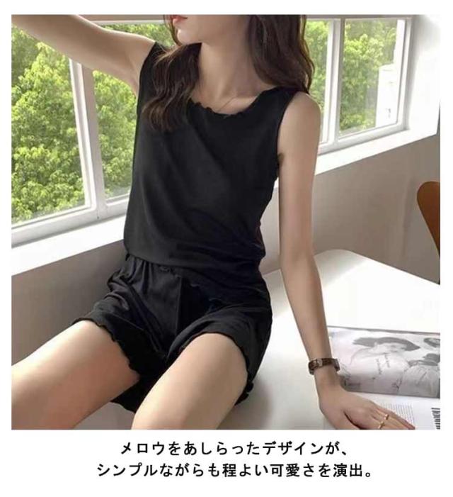 涼しい パジャマ 冷感パジャマ タンクトップ ショートパンツ 上下 セット セットアップ ルームウェア ナイトウェア メロウフリル 可愛い ノースリーブ 短パン 無地 夏 夏服 アイスシルク パジャマ さらてろ 涼感 部屋着 送料無料