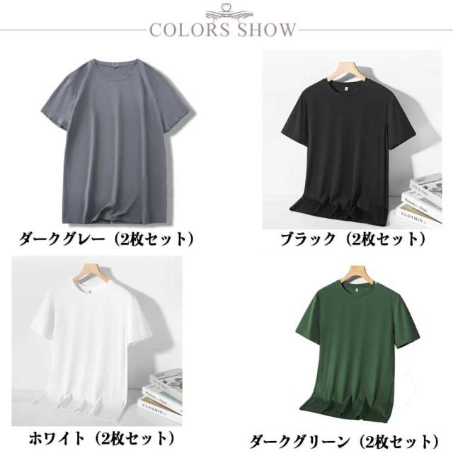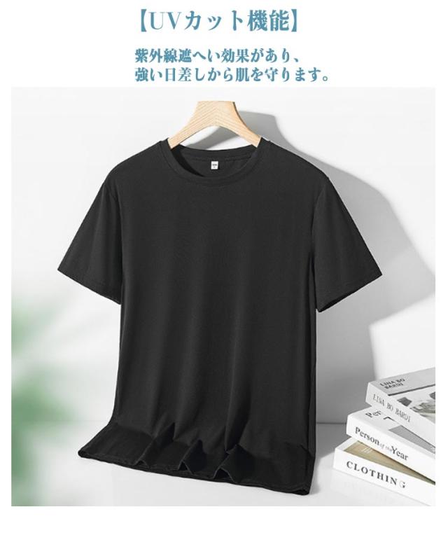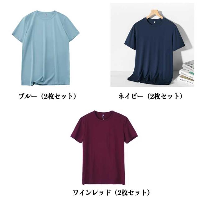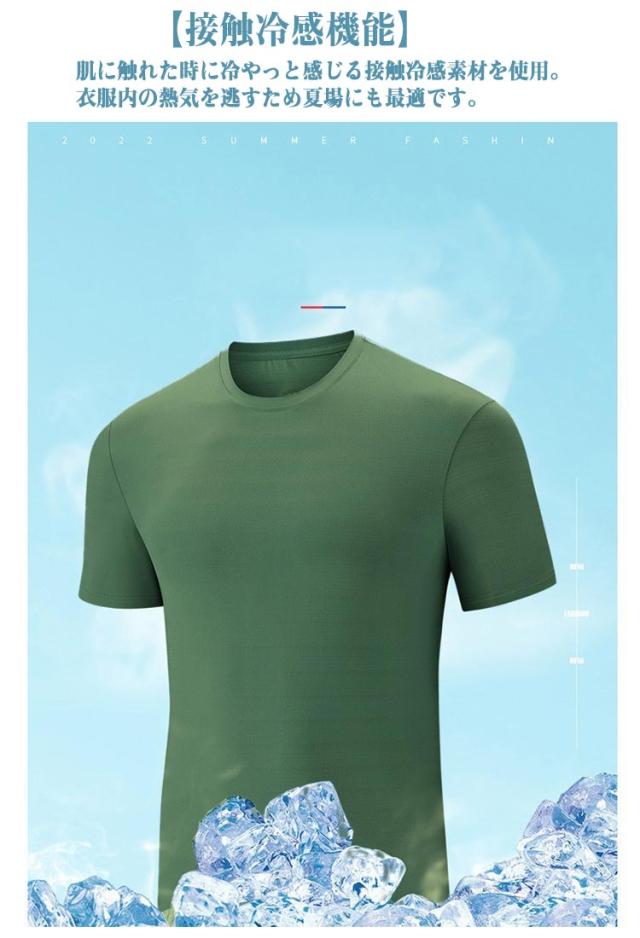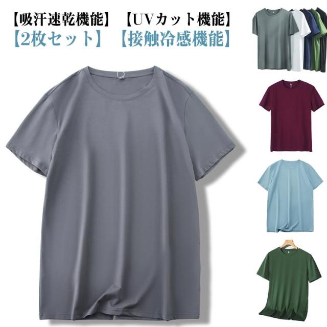 2枚セット!接触冷感 Tシャツ クルーネック トップス 伸縮性 ゴルフ ストレッチ 抗菌 速乾 冷感 半袖Tシャツ 防臭 吸汗性 メンズ 半袖 無地 通気性 薄手 軽量 インナー UVカット サマー アウトドア スポーツ ひんやり
