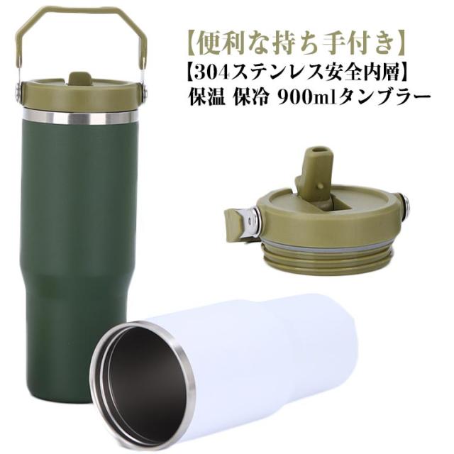タンブラー 保温 保冷 蓋付き 大容量 900ml 真空断熱 漏れない タンブラー 水筒 ストロー付き 二重構造 持ち運び マグボトル 水筒 車載せでき こぼれない ステンレス コーヒーカップ おしゃれ ドリンクホルダー アウトドア ギフト