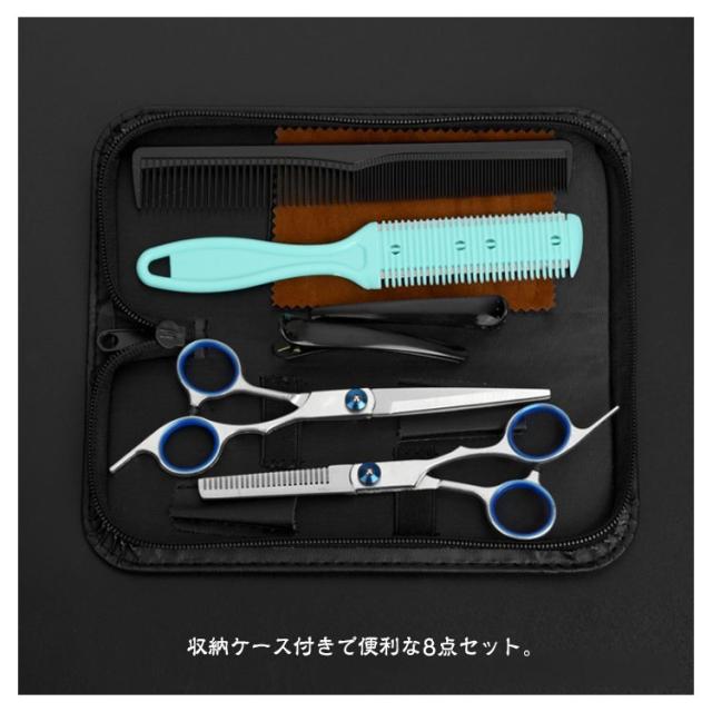 散髪 ヘアカット はさみ セット 子供 大人 キッズ 赤ちゃん ベビー用 髪切りハサミ カットハサミ ステンレス 家庭用 便利 すきばさみ 2本くし コーム セルフカット グッズ 収納ケース付 8点セット コンパクト 散髪道具 送料無料