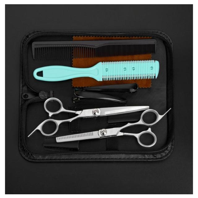 | ご家庭で気軽にセルフカット。家で簡単セルフカット。散髪セット。散髪ハサミ+すきバサミ。 収納ケース付きで便利な8点セット。 ステンレス製で錆びに強く、切れ味抜群でスパッと切れます。 | |