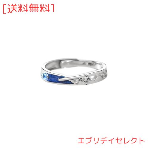 [Rockyu] 永遠の愛 指輪 レディース フリーサイズ シルバー925 ダイヤリング ブルー 青空 星 月 指輪物語 カップル風 ペアリング 金属ア