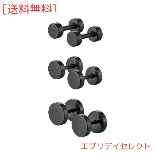 Richsteel ピアス メンズ 黒 ピアスセット 3ペア つけっぱなし 両耳 人気 ブランド バーベル シンプル おしゃれ 男性 アクセサリー(ブラ