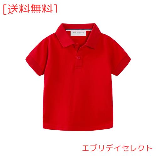 [LSMUDKINGDOM] ポロシャツ キッズ 半袖 鹿の子 カラーシャツ 赤 無地 子供服 男の子 女の子 90