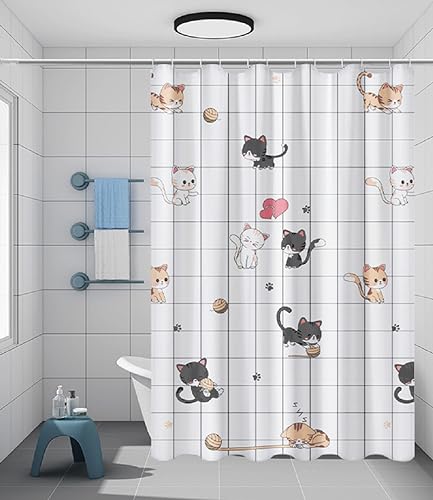 シャワーカーテン 防水 防カビ 120x180cm 半透明 浴室用カーテン 可愛い猫ちゃん バスカーテン ユニットバス 浴室 間仕切り 目隠し