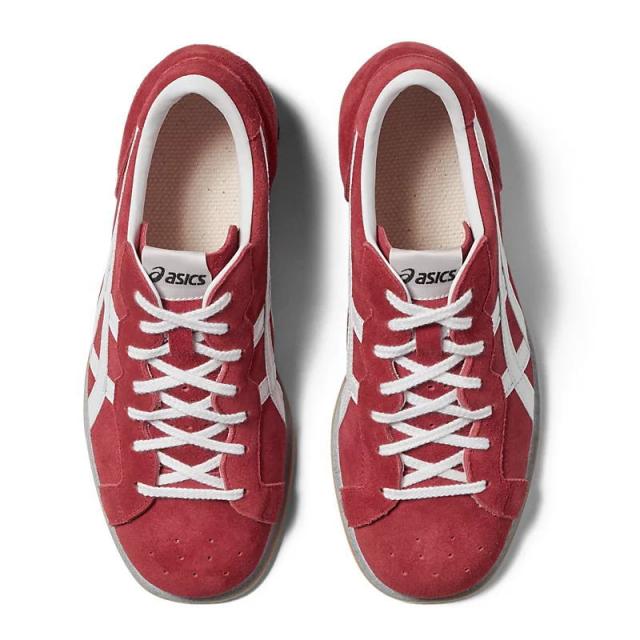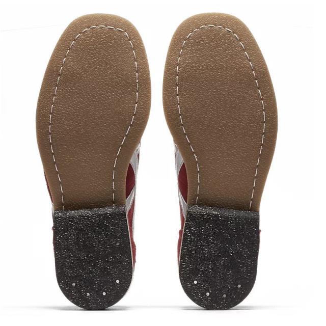 レッドとブルーのアッパーはしなやかな質感のスエードレザーを使用し、
