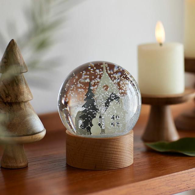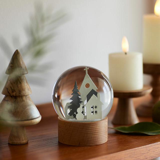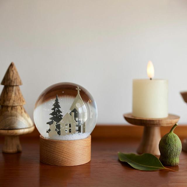 スノードームを置いた周りにキャンドルやツリーなどを飾ったら、その場がよりクリスマスの雰囲気になります。