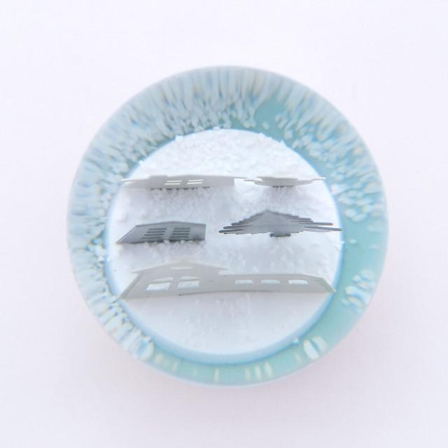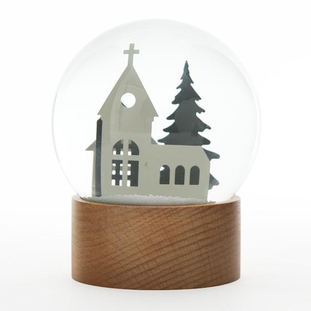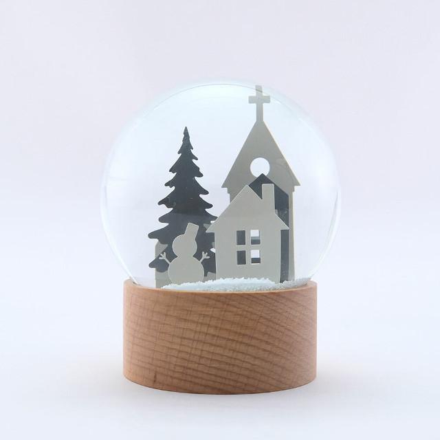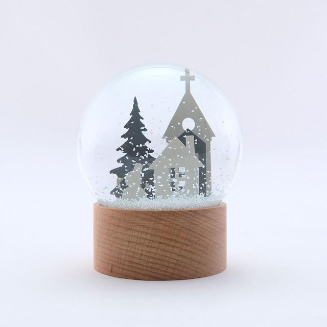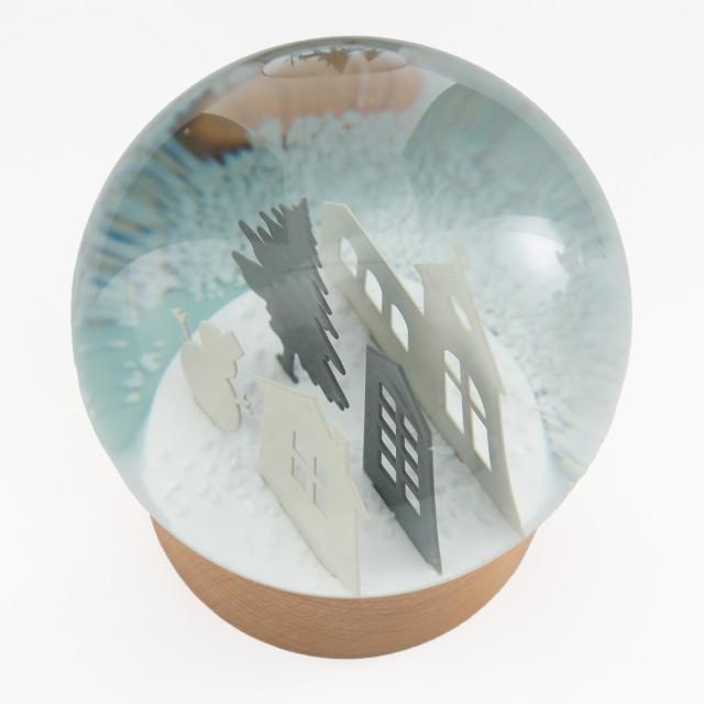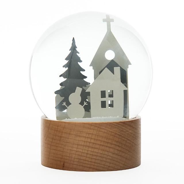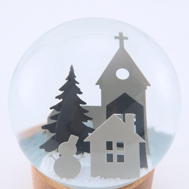 真っ白な雪が降り積もる街並みをイメージしたスノードーム。