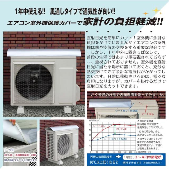室外機節約シート 遮熱 シート 室外機日除け エアコン 室外機 室外機カバー アルミ 日よけ 日除け 保護フード 省エネ エコ 日射 雨 雪 風 汚れ 対策 簡単 パネル 節電 クーラー 断熱 直射日光 反射 パネル 保護 固定 熱中症 冷房
