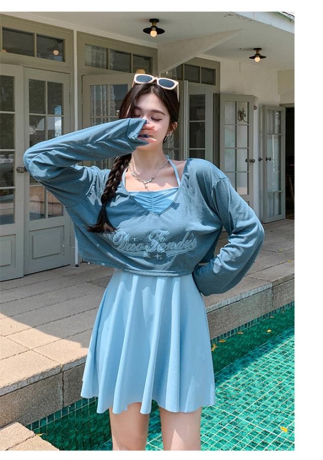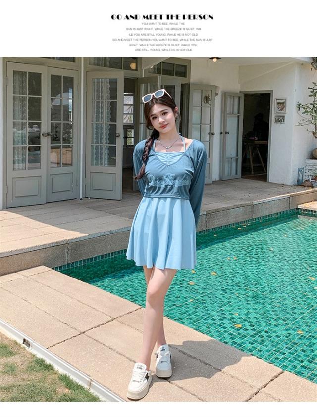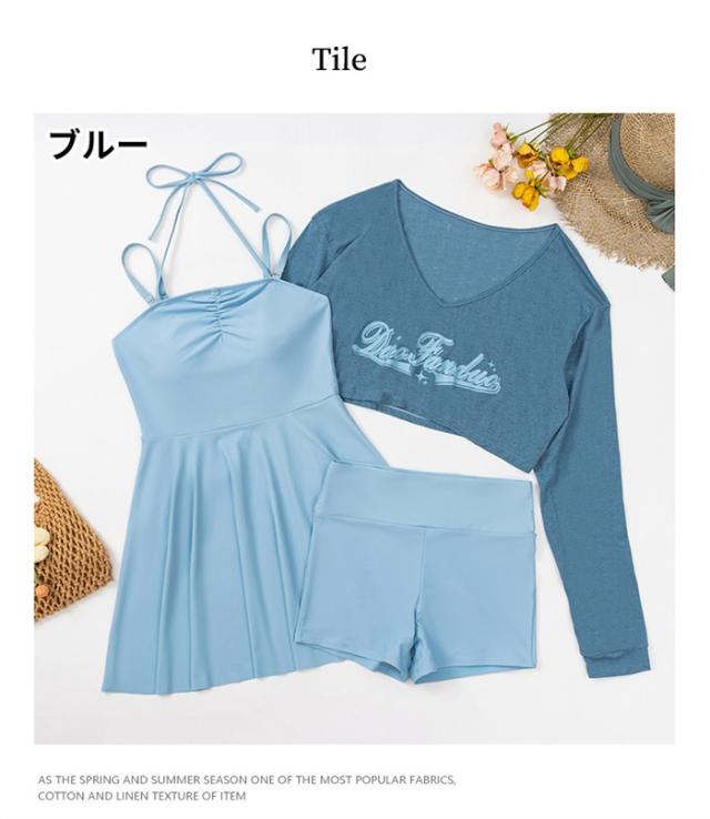 水着 レディース 大きいサイズ ワンピース 体型カバー ぽっちゃり 服みたいな 中学生 高校生 3点セット 長袖シャツ ラッシュガード ママ水着 セパレート 10代 20代 韓国 小胸 二の腕カバー 露出控えめ 女の子 30代 海 プール リゾート おしゃれ 可愛い ブルー 黒 グレー k2068d7d7lc