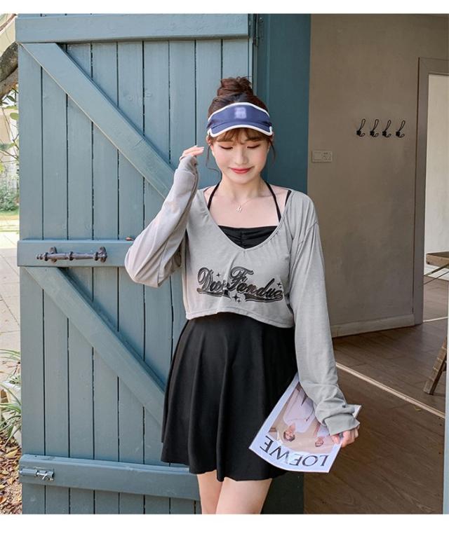 水着 レディース 大きいサイズ ワンピース 体型カバー ぽっちゃり 服みたいな 中学生 高校生 3点セット 長袖シャツ ラッシュガード ママ水着 セパレート 10代 20代 韓国 小胸 二の腕カバー 露出控えめ 女の子 30代 海 プール リゾート おしゃれ 可愛い ブルー 黒 グレー