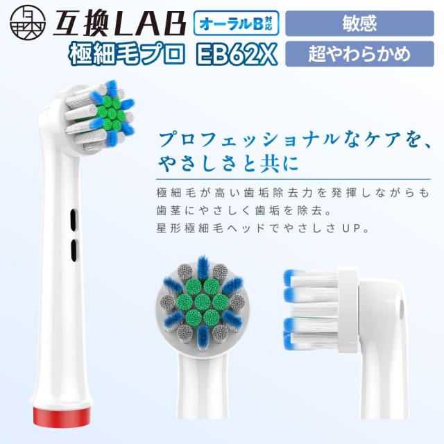 互換LAB オーラルB用 替えブラシ ブラウン互換 やわらか極細毛ブラシプロ EB62X 4本 敏感 超やわらかめ ブラシ 替えブラシ 電動歯ブラシ カラーリング 歯垢除去 歯茎 歯茎ケア おすすめ 口腔ケア デュポンナイロン ステイン 口臭 口臭ケア やわらか極細毛 極細毛 送料無料