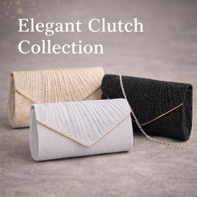 色のバリエーション: シルバー、ベージュ、ブラックの3色。どの色も華やかで、どんなドレスとも相性が良い。