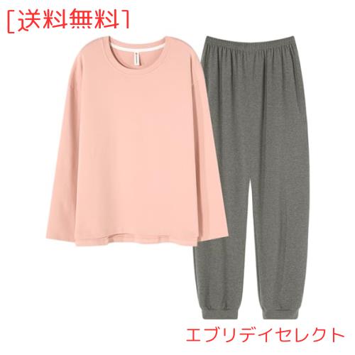 [Kira Sutsu] パジャマ 春 夏 秋 レディ ース 綿 無地 ガールズ 学生 少女 ルームウェア 長袖 上下セット かわいい 部屋着 寝