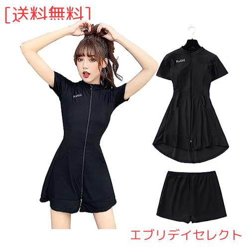 [Volsha] 水着 レディース 水着 2点セット フィットネス UVカット ワンピース水着 半袖ラッシュガード 体型カバー タンキニ スポーティー
