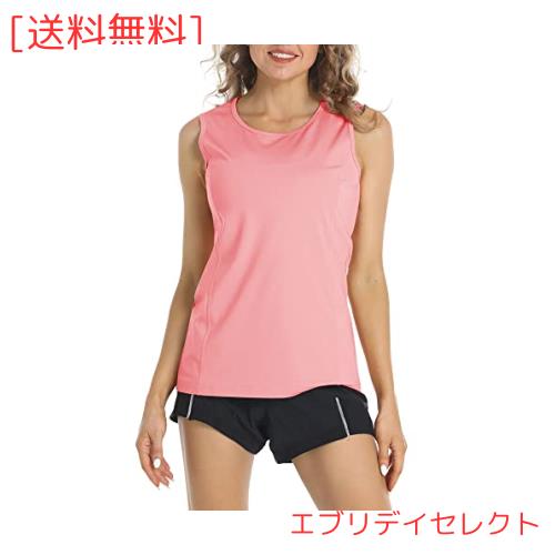 [KEFITEVD] ノースリーブtシャツ レディース レイヤードタンクトップ 重ね着 袖無し インナー 吸汗速乾 上着 ロング丈 ピンク XL