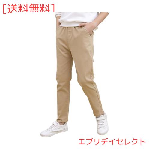 [Rolanko] 子供服 男の子 ズボン キッズ ロングパンツ スクールパンツ フォーマルパンツ 通園通学 無地 カーキ 160