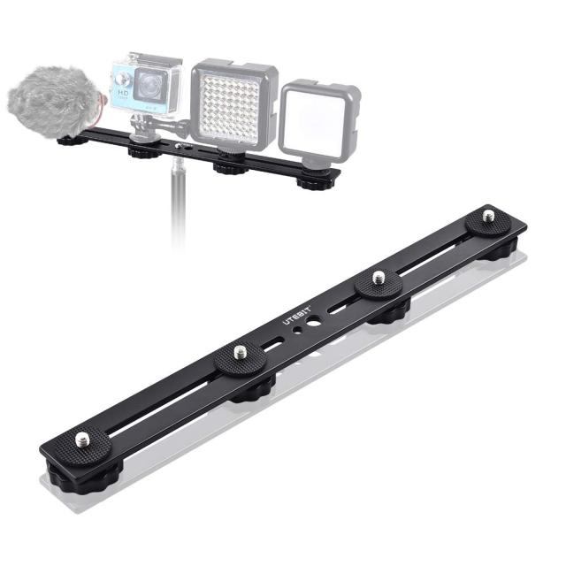 カメラプレート ホットシュー付き 30cm 四台取り付け可能 カメラシュー 4つの1/4ネジ アルミ合金製 カメラ プレート 4台 l型カメラ