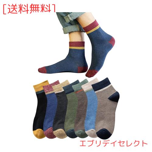 [Hanmeimei] メンズ 靴下 【抗菌 防臭 綿】7足セット 24-28cm スポーツソックス 中厚手 吸汗 カラフルソックス アウトドアソックス カジ