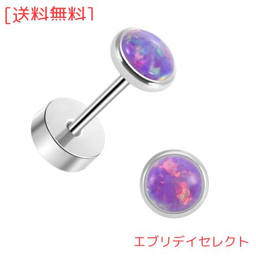 [J.aey] 医療用 純チタン ピアス つけっぱなし用 セカンド ファーストピアス メンズ レディース 5mm 最高級オパール紫 軸太0.8mm(20g 人