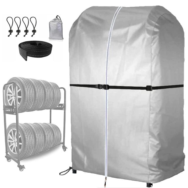 Tire Rack Cover, Outdoor, Waterproof, 8 Storage, Tire Storage Cover, 420D, Thick, Tire Cover, Height 57.7 x Length 43.3 x Width 29.5 inches (146 x 110 x 75 cm), UV Protection, Degradation, Stain Resistant, Dustproof, Rainproof, Durable, Storage Bag Included