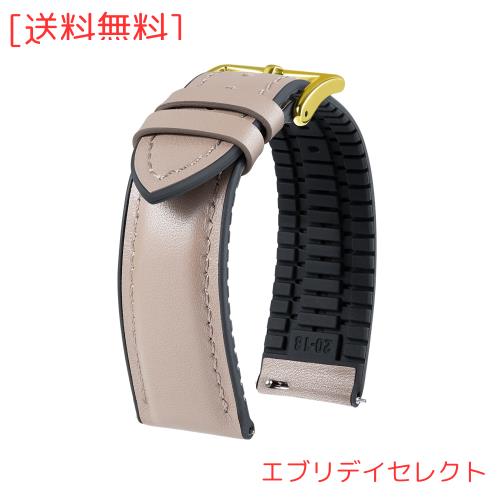[BINLUN] レザー 時計バンド 内側のラバー 通気性 ハイブリッド クイックリリースウォッチベルト 腕時計ベルト スマートウォッチベルト