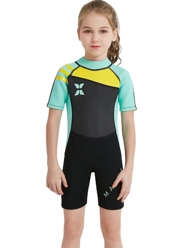 グリーン-短袖_S ウエットスーツ 子ども用 2.5mm 半袖 スプリング キッズ ショートスリープ スプリング バックジップ スイムウェア サーフィンウエットスーツ Sサイズ グリーン