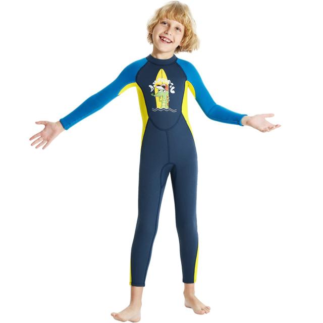 M_ブルー・イエロー ウェットスーツ 子ども フルスーツ 2.5mm ネオプレン バックジップ UVカット 保温 ダイビングスーツ 男の子 ウエットスーツ サーフィン SUP Mサイズ