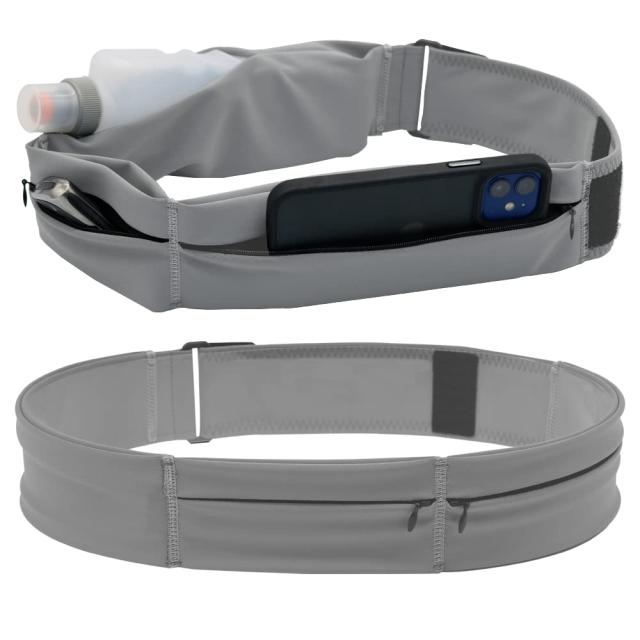 L_グレー CUBATTY ランニング ポーチ 揺れない ランニング スマホ ポーチ 3ポケット 76g超軽量 安定感 防水 防汗 大容量 伸縮素材 ペットボトル収納可能 メンズ レディース ジョギング マラソン ランニング用スマホケース (L, グレー)