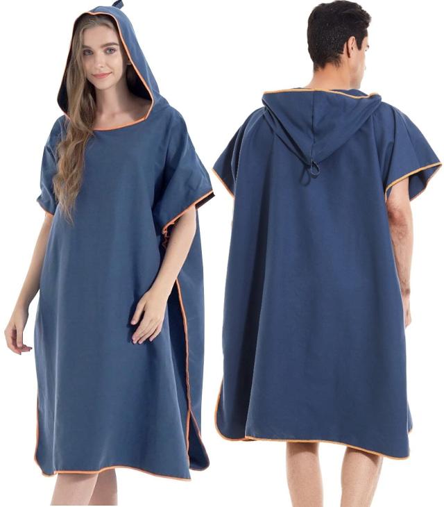 Free Size_薄手ネイビー 【unizom】 サーフィン ポンチョ お着替え ラップタオル バスローブ レディース メンズ マイクロファイバー 速乾 軽量 ネイビー