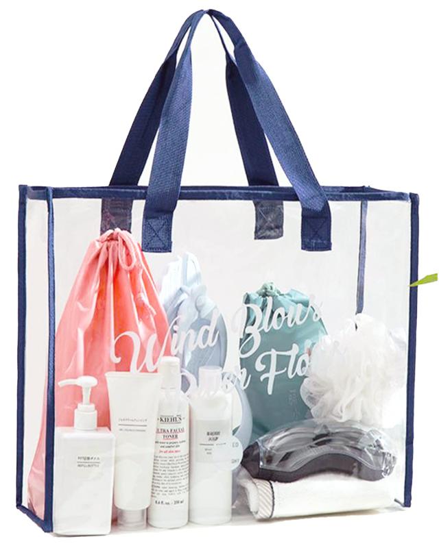 ネイビー [YFFSFDC] プールバッグ ビニールバッグ トートバック 透明 大容量 防水 丈夫 スイミング アウトドア 用 (ネイビー)