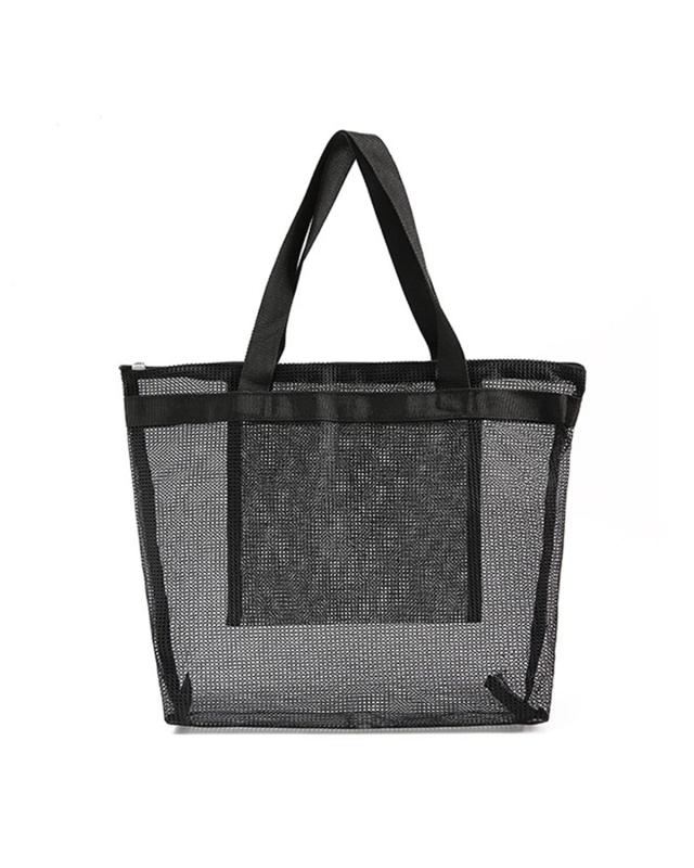 harukita メッシュバッグ 手提げプールバッグ プールバッグ ビーチバッグ お風呂バッグ 大容量 内側ポケット付き 多用途 速乾 収納 ブラック (B)