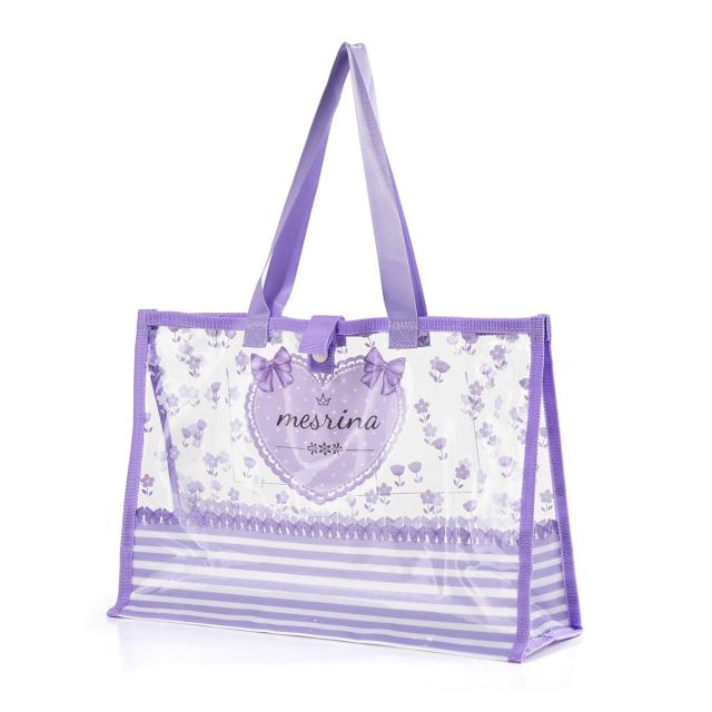 ハート-パープル [MESRINA] プールバッグ 女の子 小学生 ビーチバッグ スイムバッグ おしゃれ 花柄 リボン (ハート-パープル)