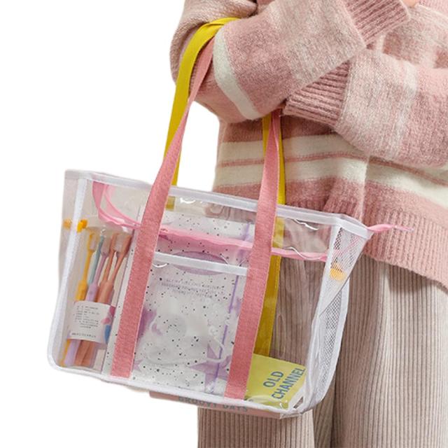 【防水素材、透明デザイン】:撥水性があって水に濡れても安心な透明PVCビニール製で、水や汚れに強く丈夫なクリア素材バッグは、砂やお水など軽く払えば出てきます。