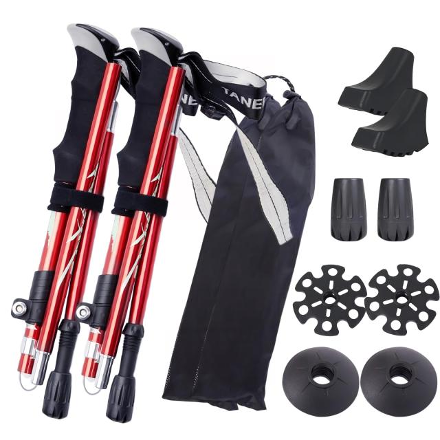 赤 サムコス トレッキングポール 2個セット 付属品付き 折りたたみ式 36-130cm伸縮可 長さ調整可能 登山ストック ウォーキング ウォーキングポール 登山 杖 ステッキ ポール アウトドア 男女兼用 収納バッグ付き (赤)