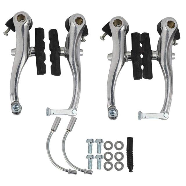 Vブレーキセット ブラックフロントリアアルミ合金Vブレーキセット Vブレーキ 自転車ブレーキ 調整可能 安全 耐摩耗性 頑丈 銀