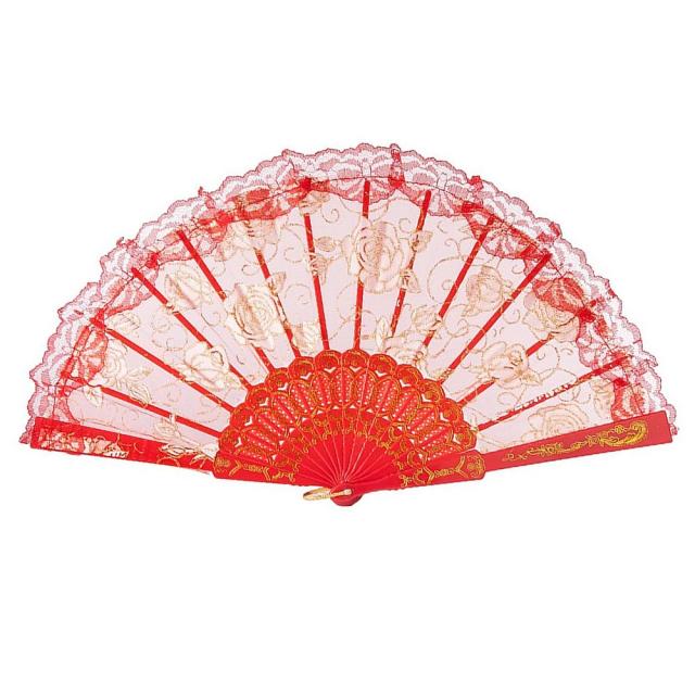赤 LOYELEY レース扇子 フラワーファン 薔薇 バラ柄 折りたたみ式 ダンス 踊り スペイン ドン・キホーテやスペインの踊り バレエ バレエ用品 練習用 ダンスパフォーマンス用 (赤)