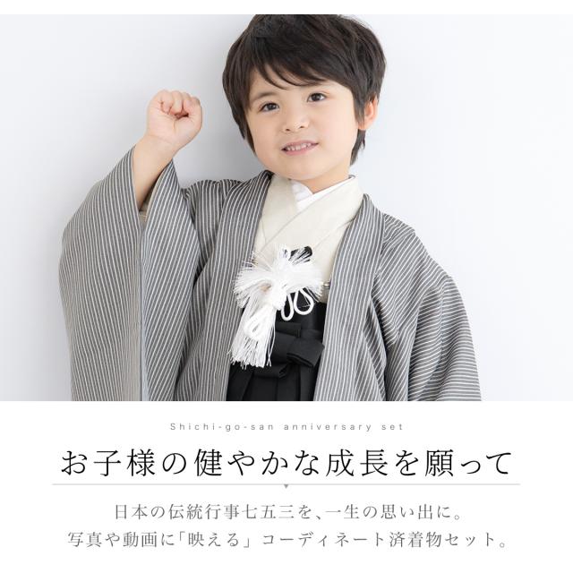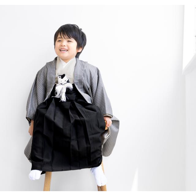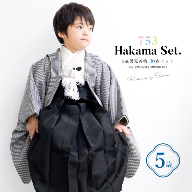 七五三 着物 5歳 販売 五歳 袴セット 10点セット 羽織 着物 半襦袢 袴帯 羽織紐 扇子 懐剣 お守り袋 雪駄 セット 男の子 グレー 黒 和服 男児 送料無料