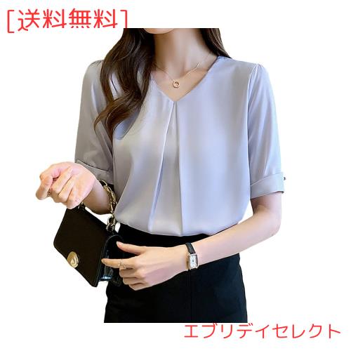 [Bolan Verl] レディースファッション ブラウス オフィス ホワイト 半袖 シャツ vネック 白ブラウス ゆったり きれいめ 無地